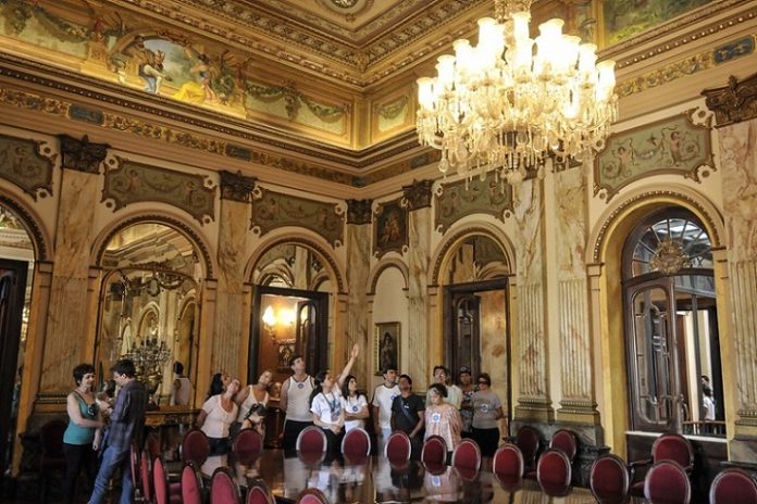 Guia apresenta as instalações do Palácio da Liberdade, em Belo Horizonte (MG)