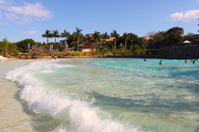 Ondas agitam as águas de 30 graus centigrados do Blue Park