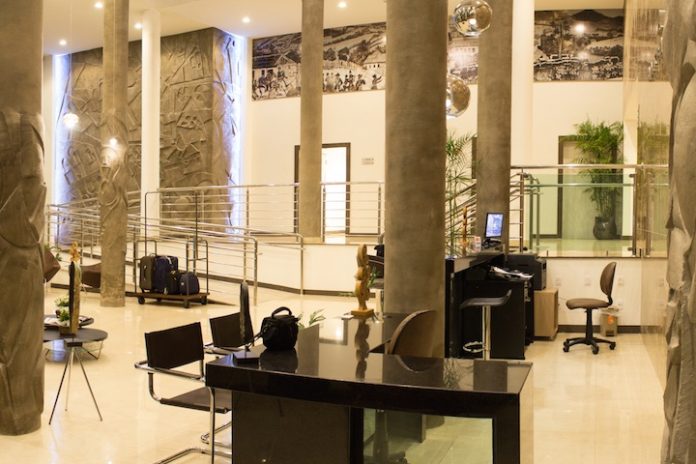Lobby e recepção do Minas Platinum Hotel