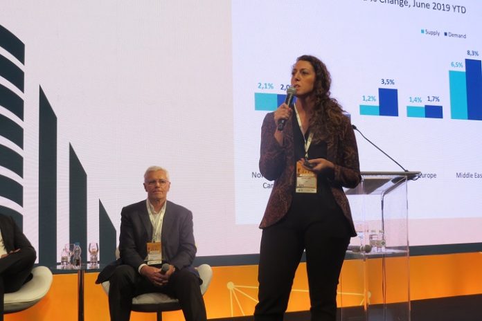 Para começar o painel, Patrícia e Cypriano apresentaram dados sobre a hotelaria nacional e global. De acordo com a diretora do STR, há crescimento significativo da demanda no mundo inteiro, com exceção da América Central. A região passa por turbulências políticas que impactam o fluxo turístico.