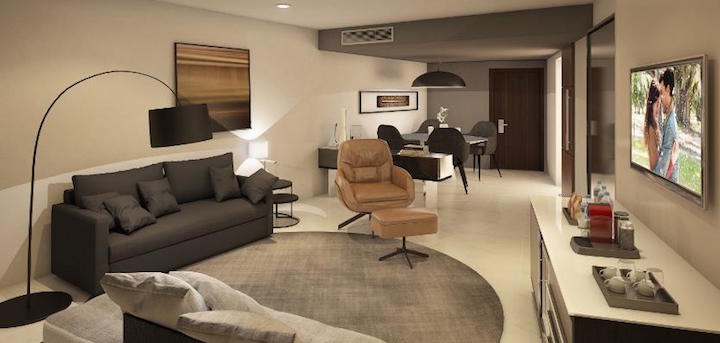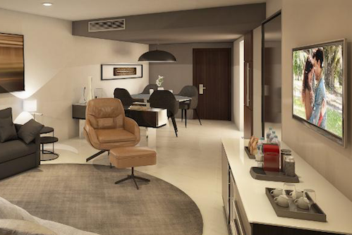 Perspectiva artística de uma das habitações do Gran Meliá Nacional Rio de Janeiro, que abre em setembro