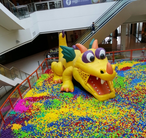 A nova atração tem cem m² de piscina, com infláveis como escorregadores e pula-pula e mais de 200 mil bolinhas coloridas.