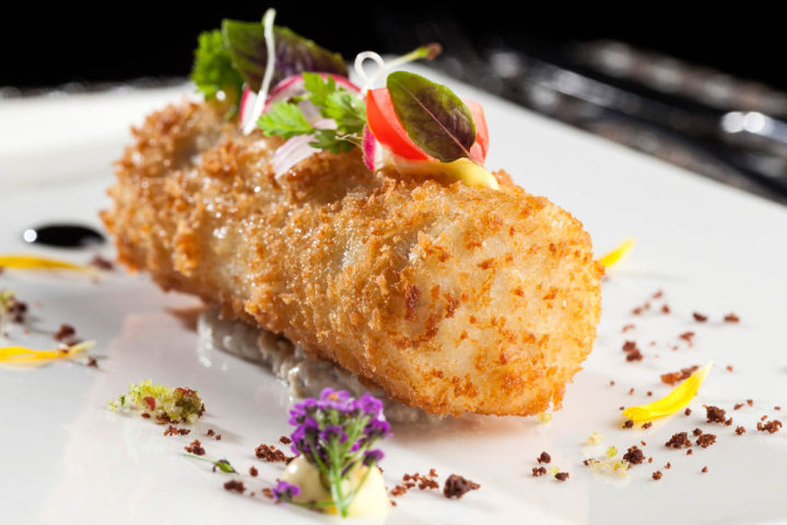 Palmito crocante recheado com duxelle de champignons