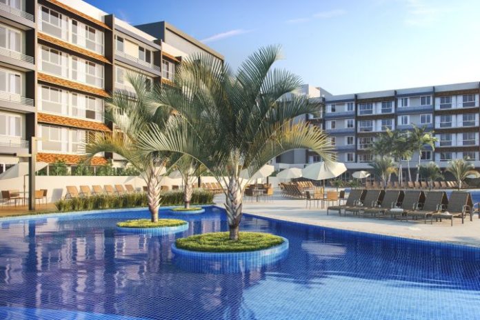 Numa área de mais de 31 mil m², serão construídos quatro prédios de cinco andares, com apartamentos mobiliados de 42 m² e 63 m², compostos por quarto, cozinha, sala e banheiro. Além disso, numa área de lazer exclusiva, haverá lobby, restaurante, parques aquáticos para adultos e crianças, ofurôs, espaço kids, playground, academia, sauna, SPA, bar, lojas, cinema, salão de jogos, mirante e piscina coberta e aquecida.